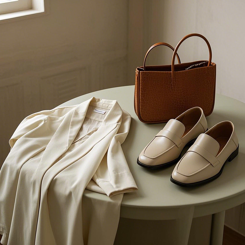 Sie sind trends:Modekleidung, tüten und schuhe, die gut aufeinander abgestimmt sind, können in vielem stil und mit leichtigkeit eine vielseitigkeit entfalten.
